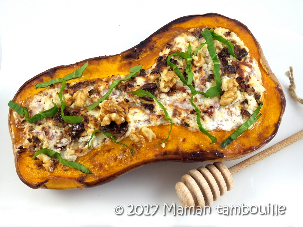«vous pouvez également ouvrir la courge butternut en deux dans la longueur, la farcir et la cuire en entier au four.